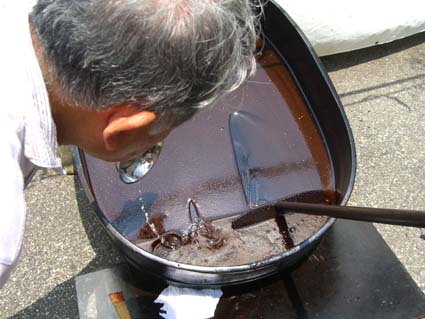 井戸水を差します 温度を下げ滑らかな漆になります。