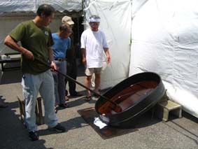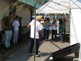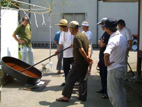 今年も梅雨明けと同時に天日黒目を行いました。 今年1月に輪島市より無形文化財に指定を受け天日黒目保存会や見学の方 又、工業試験場の江頭さんに温度も測定していただきました。