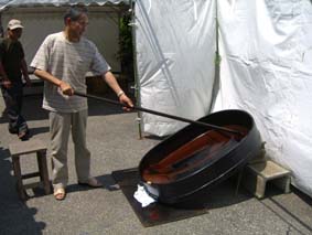 毎年梅雨明けとほぼ同時に 天日黒目(輪島市無形文化財指定)を行います。