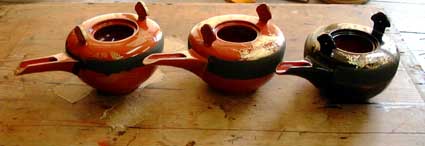 一般的な修理の方法。 1、全体の汚れをおとす。 2、傷付いたり欠けたりした 3、コクソ(ケヤキの粉を 4、サビ(砥の粉と漆を 5、全体を砥石で平らにする。 6、上塗りをして仕上がり。 |